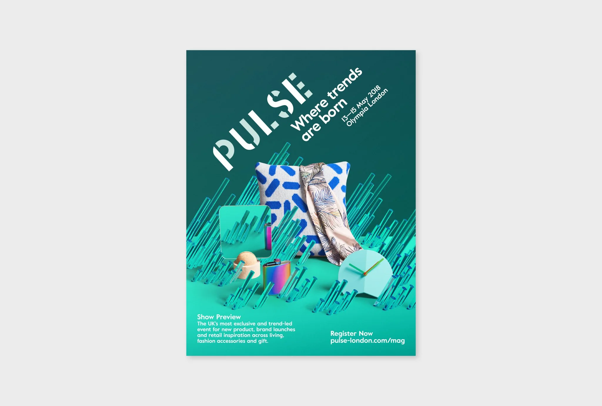 We produced a full campaign for the 2018 edition of trade exhibition Pulse, held at Olympia London. Exploring Pulse’s focus on new brand launches and product releases, the headline ‘Where trends are born’ became the show proposition for the year.